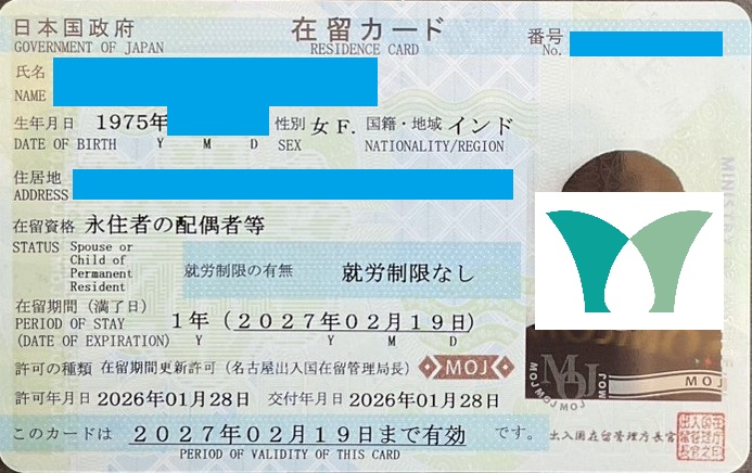 愛知県にお住いのインド人の「永住者の配偶者等」ビザのお客様から、更新のご依頼をいただき、無事に許可をいただきました!