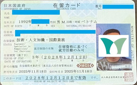 神奈川県にお住いの「技術・人文知識・国際業務」ビザのお客様から、更新のご依頼をいただき無事に3年の許可をいただきました!