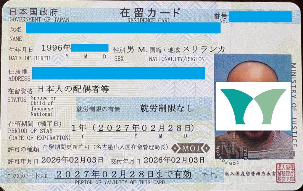 「日本人の配偶者等」ビザ、更新許可!