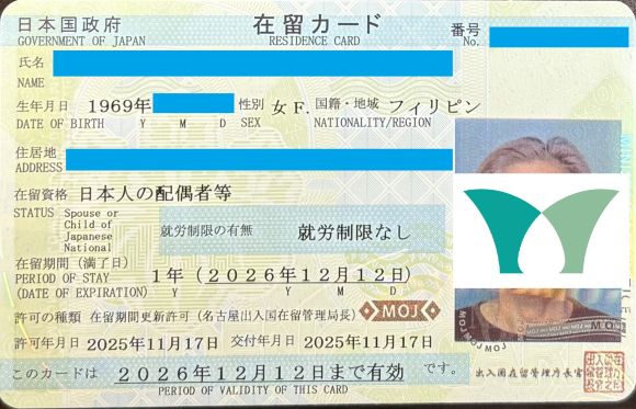 愛知県にお住いの「日本人の配偶者等」ビザのお客様から、更新のご依頼をいただき無事に許可をいただきました!