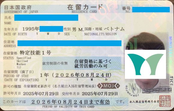 お客様は「留学」ビザで来日され、専門学校卒業後に「特定技能1号」ビザになり、現在の会社で働いておられます。